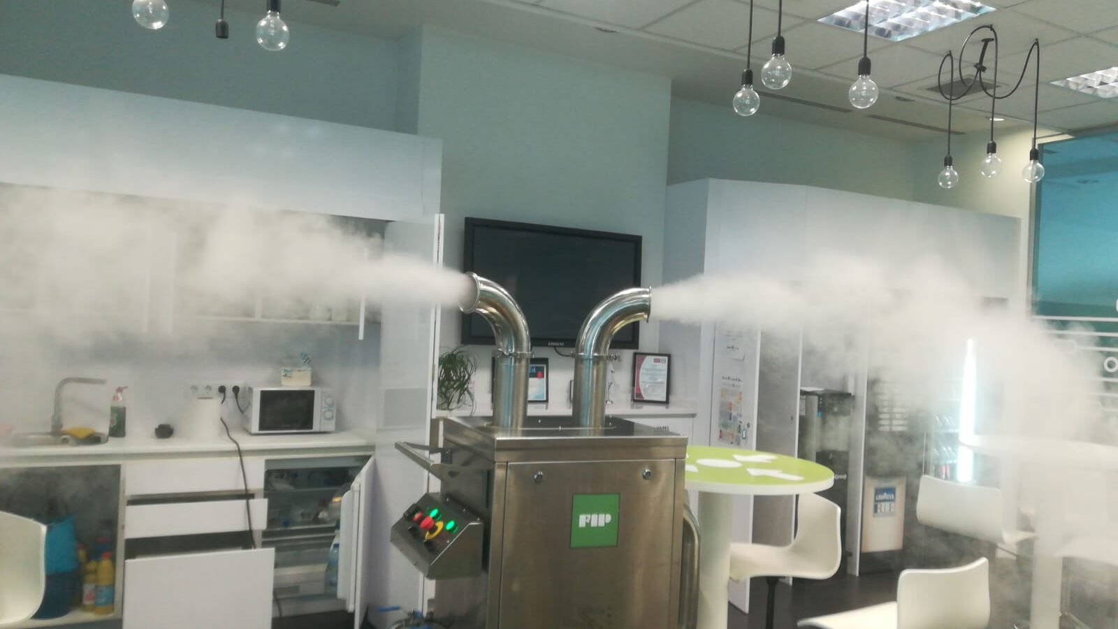 En esta difícil situación Grupo Ocean esta también comprometido con sus clientes ofreciendo la última tecnología no solo en productos desinfectantes sino también en los procesos de desinfección por nebulización, donde sin afectar a equipos electrónicos somo capaces de desinfectar con gas cualquier oficina o instalación reduciendo al mínimo los medios humanos.